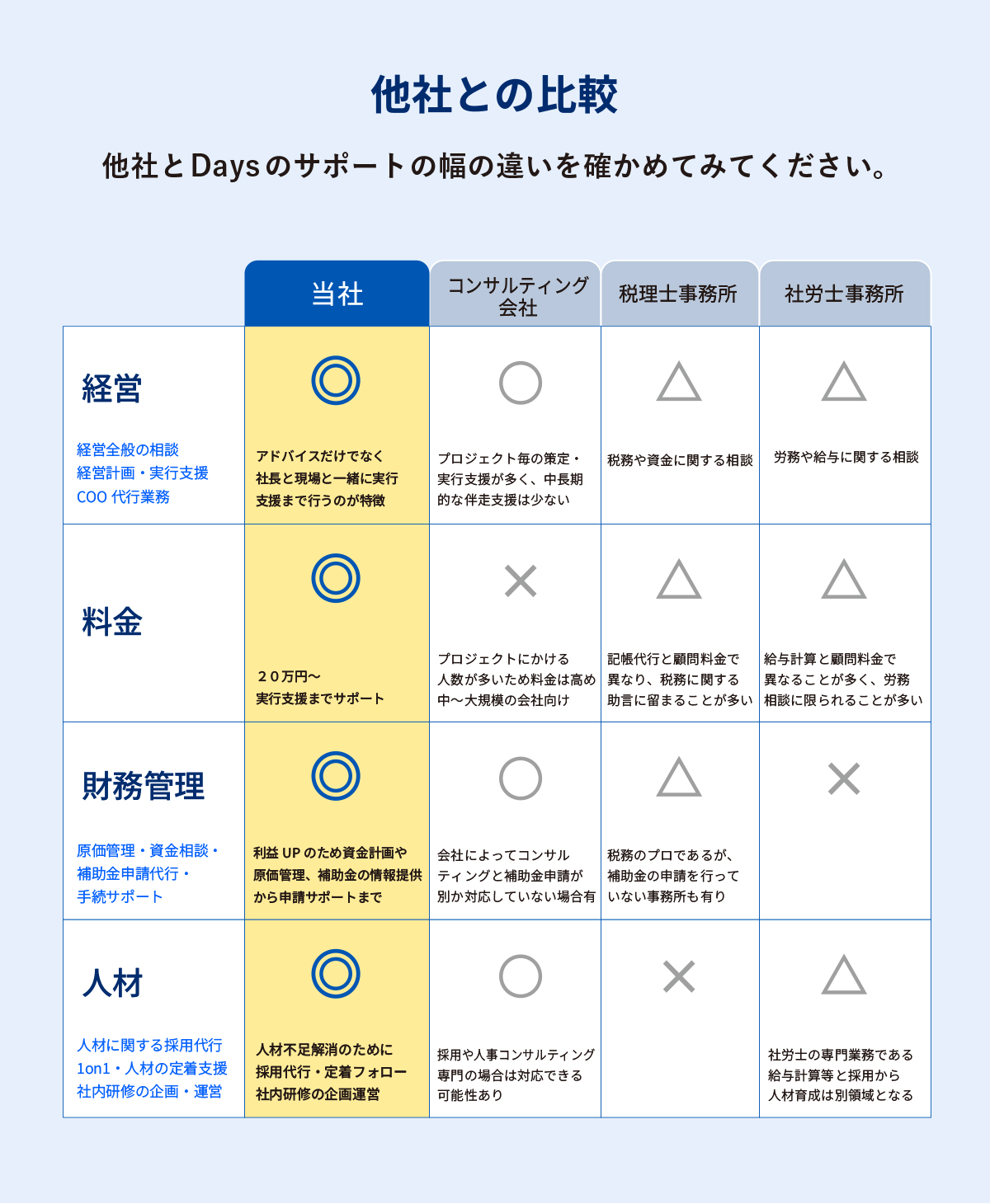 - 国家資格「中小企業診断士」がCOO代行を直接担当