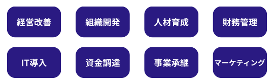 専門サービスは、適切なヒアリングによる課題抽出と改善施策の提案、強みを活かした事業展開等の経営戦略設計を得意とし、それに伴う資金調達・補助金活用・人材の採用と定着・販売戦略の営業支援を得意としています。