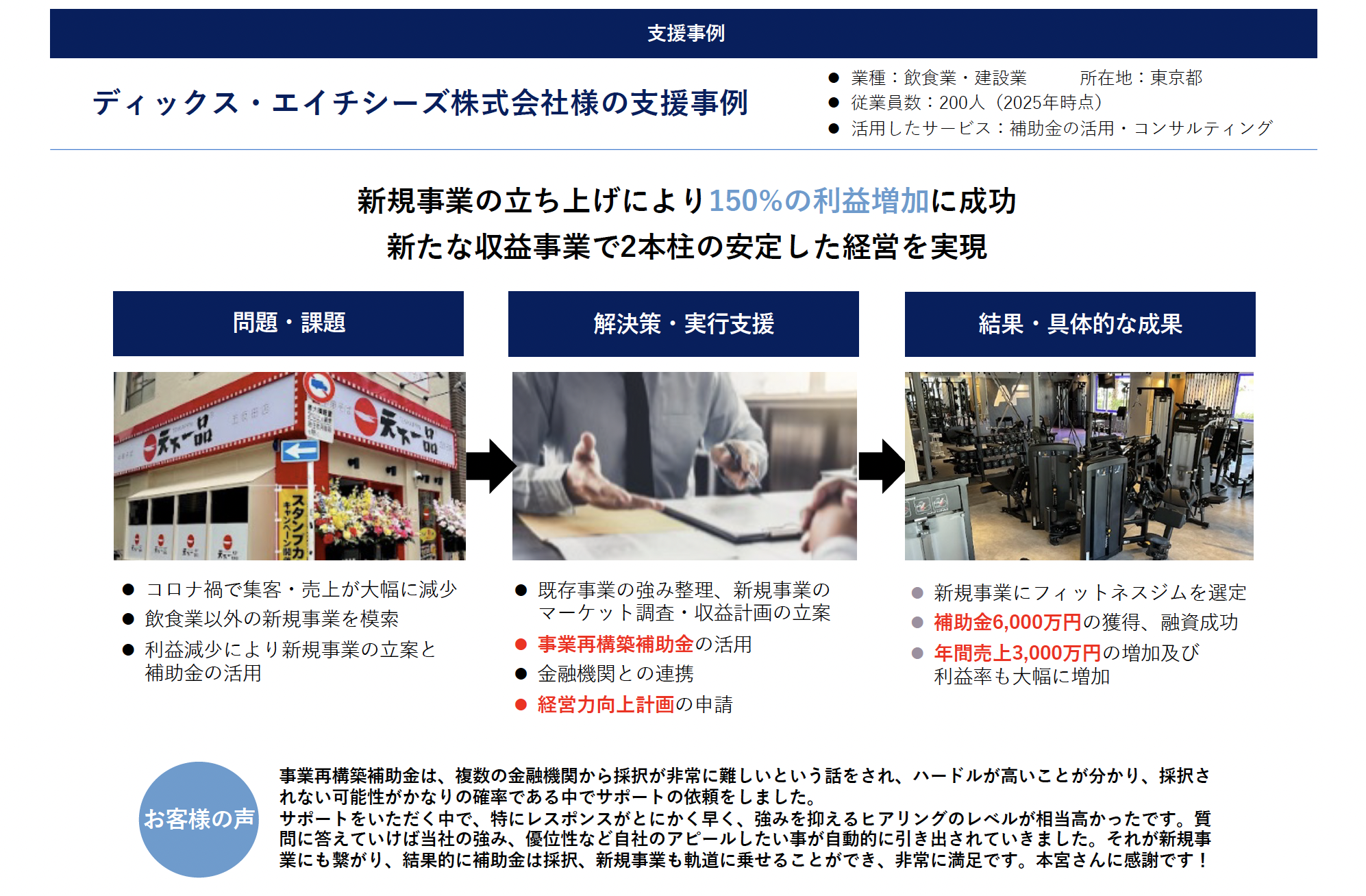 【支援事例①】強みを最大に活かした新規事業で売上拡大&事業再構築補助金6,000万円を獲得!(東京都)
